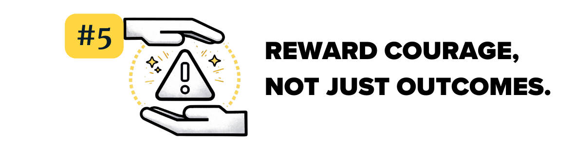 If you want more courageous behavior, you have to explicitly reward it. Recognize people who challenge the status quo. Celebrate teams that try new approaches even when they don't pan out. Promote people who take smart risks, not just those who never made mistakes.
