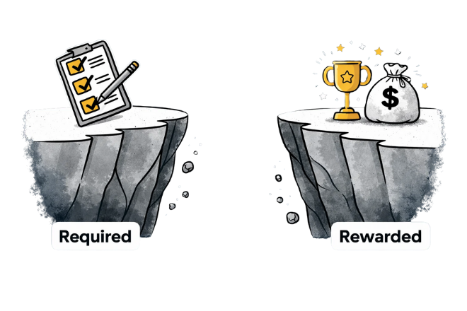Your promotion and recognition systems are probably optimized for execution and delivery. Hit your numbers, deliver your projects, manage your budget. All important, but none of it requires courage.